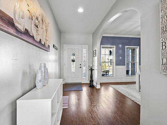 Stunning, two-story brick home in the coveted, Enclave at Chilesburg. It features 5 bedrooms, 3.5 baths, and an inviting layout ready for entertaining. Enjoy a bright two-story great room with a stone fireplace, a stylish eat-in kitchen with granite island, double ovens, wine fridge, and a main-level bedroom. The upper level offers a serene primary-suite with tiled shower, soaking tub, and huge closet, plus three additional bedrooms and convenient laundry. The finished walkout basement is an entertainer's dream; with two living areas, an oversized wet bar, electric fireplace, full tiled bath, bonus room, and storage area that is perfect for a secondary living space or potential 6th bedroom. The home backs up to peaceful green space and provides direct access to neighborhood walking trails. The Enclave offers maintained space, walking paths, and quick access to shopping and dining. Filled with natural light, thoughtful upgrades, and generous storage, this home delivers comfort, convenience, and rare outdoor serenity.