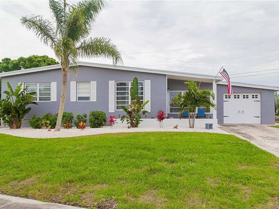 Exquisitely decorated, meticulously maintained, modern farm style home featuring shiplap and brick accented walls. This home shows like a model. New metal roof in 2019, AC in 2020, Vinyl plank flooring in 2019, Screened patio and paver walkway in 2021. New landscape and sod. Boat/RV parking all situated on a large corner lot. A portion of the one car garage has been converted into a third bedroom leaving the front half available for storage/workshop. Close to shopping, waterfront dining, boat ramps, parks, tennis and more. Don't let this one slip by.