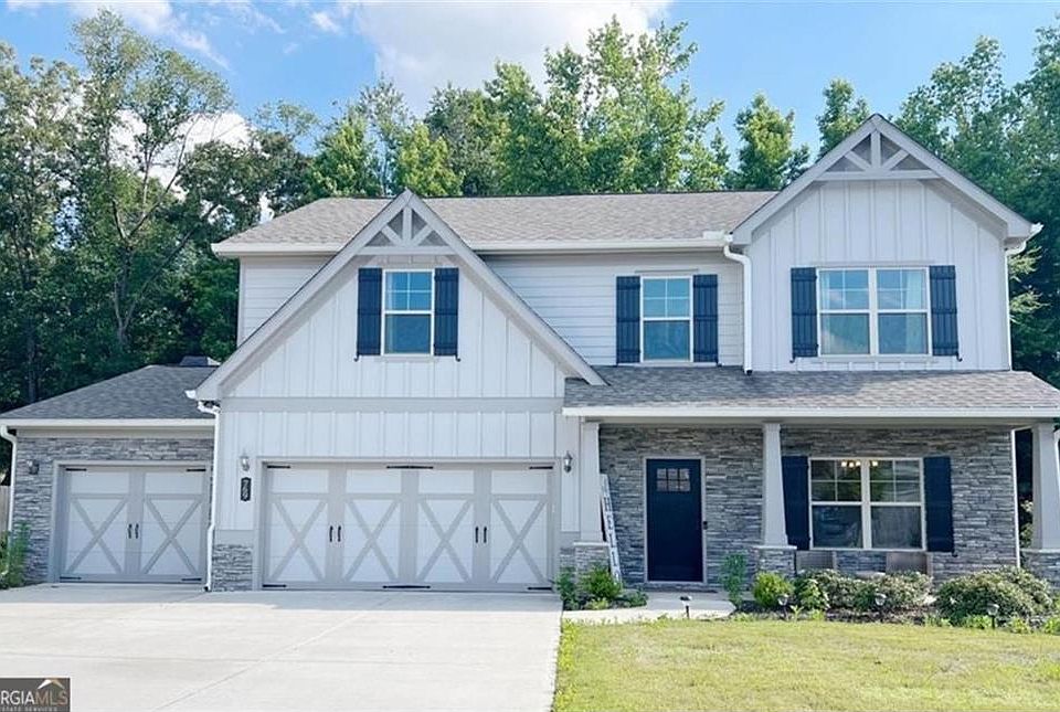 Built in 2021 with 4 bedrooms , 3.5 bathrooms. Open concept floor plan, perfect for entertaining. It features granite countertops in the kitchen and bathrooms, stainless steel appliances. The spacious family room with gas fireplace. Main floor laundry room. Separate dining room or a home office space. The master bath has his and her walk-in closets, as well as his and her sinks. Covered back porch with a fireplace. Fully fenced in backyard with irrigation system. 3 car garage. Amenities include sidewalks, community pool, playground, and a tree lined walking trail.