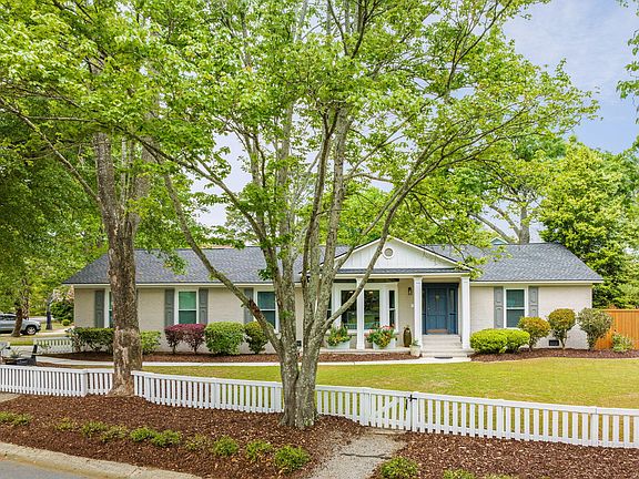 Convenience, upgrades, and single-level living await at this turnkey 3 bedroom, 2.5 bath home with an office and FROG in Wakendaw Lakes. Upon entering through the front door, you are greeted with a bright and open foyer and dining room, which leads to the formal living room. The formal living room has a wood burning fireplace and built-ins for additional storage. Beyond the formal living room is the kitchen and newly renovated sunroom. The sunroom has custom built-ins and vaulted ceilings with custom poplar-wrapped beams. The charming eat-in kitchen has a new dishwasher and fridge, a newly added large pantry, butcherblock countertops, and bar seating. It is open to the sunroom and also leads to the office (which is currently being used as a nursery).Beyond the kitchen is the door to the FROG (the FROG is not counted in the bedroom count), which is large enough for guest space, a play room, an office, or simply conditioned storage. Back downstairs by the FROG door you'll find a newly renovated half bath and a second pantry. A custom, recently finished mudroom is just beyond the half bath and is complete with a flip top bench for storage, a coat closet, shoe cubbies, spacious cabinets, and a countertop on top of the newer washer and dryer for folding. Just off the mudroom is a door to the two-car garage, and another door that leads to the brand new outdoor shower in the backyard. On the other side of the home you'll find three generously sized bedrooms. In the hallway there is a renovated hall bath for the two spare bedrooms to share, a linen closet, and a broom closet. The primary suite is large and bright, and has a freshly redone bathroom and a walk-in closet. Outside you'll find a completely fenced yard in both the front and the back. The backyard has a fire pit, easily-maintained landscaping, and an 8' privacy fence. The front yard has a charming white picket fence, trees lining the lot, and a large oak tree with a firepit nearby. Mature landscaping that includes gardenias, azaleas, hydrangeas, and camelias lends to a beautifully blooming yard year-round. Wakendaw Lakes is a very centrally-located neighborhood in South Mt. Pleasant. It is walking distance to the zoned elementary school and high school, a quick drive to grocery stores and shops, 10 minutes to downtown, and just a few minutes to nearly anywhere in Mt. Pleasant.