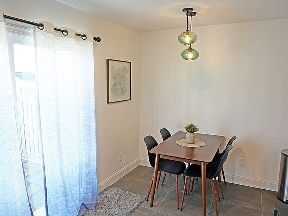 The finished lower level also includes a large bean bag chair and cozy entertainment area which is perfect for relaxing or movie nights. The home is tastefully decorated with contemporary furnishings and comes move-in ready with everything you need for a comfortable extended stay.