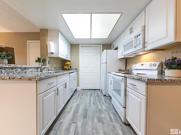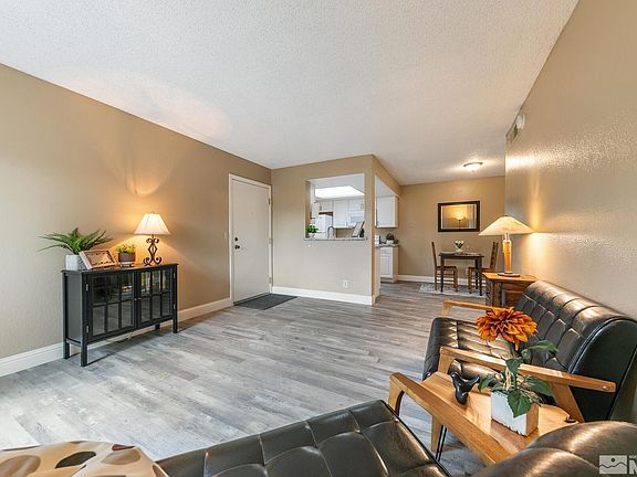 Updated and ready to move-in! New furnace, Triple paned windows, new cabinets, granite counter tops, LVP flooring, new paint, baseboards, new shower/tub surround and bath vanity. This 1 bedroom corner unit is on the ground level and gets great afternoon sun on the patio. Bedroom borders blooming trees and waterfall feature maintained by HOA. With low HOA dues and low taxes, this unit is perfect for first time buyers, investors, or commuters that want a home base in Reno. A/C just serviced and working great!, Heater Service Included if close of escow before September! Easy on/off access to I-580 to get you to and from and super close proximity to plenty of restaurants, stores and Northern Nevada Medical Center. Enjoy HOA gym, pool and hot tub a block away … or stroll to nearby sports courts, dog park and more. Designated carport parking for one car and open spaces for guests. Appliances included! HOA includes water, sewer and trash as well as exterior building maintenance and landscaping.