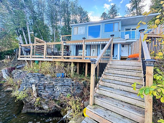 Discover the ultimate lakeside living with this stunning year-round waterfront home in Campbellford! Perfect as a permanent residence, vacation rental, or cottage retreat, this property offers year-round road access and modern water/septic systems. Enjoy a pristine shoreline with crystal clear waters, and breathtaking panoramic sunsets, a perfect place location for hunting and fishing enthusiasts. This renovated 2-bedroom, 2-bathroom home features 10-foot cathedral ceilings, creating a spacious and airy feel. Located in a peaceful, private setting, you can navigate from Trent River to Seymour Lake or enjoy the large lot. The deck is newly built in 2023. Close to top-notch restaurants, Healey Falls, Ranney Gorge Suspension Bridge, and essential amenities like No Frills, McDonalds, Tim Hortons, Canadian Tire, Giant Tiger, Rona, Home Hardware, schools, community centre, hospital, and antique stores. With well-maintained roads providing easy year-round access, this property ensures convenience and comfort. Don't miss this exceptional opportunity to own a piece of paradise in Campbellford. (This is a land lease property, $8,262.45 in 2024)