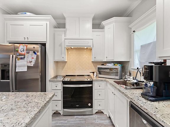 This beautiful 3 bedroom, 2 bath home offers a spacious open/split floor plan on a 0.27-acre lot. Enjoy peaceful country living just minutes from the city. Features include luxury vinyl plank flooring, crown molding, fireplace, and a chef’s kitchen with custom cabinets, granite, stainless appliances, walk-in pantry, and large island. The master suite includes a walk-in closet, custom tile shower, soaking bath, and granite counters. Relax on the inviting front porch or covered back patio. Built on piers with farmhouse charm—this home is the perfect blend of comfort and style!