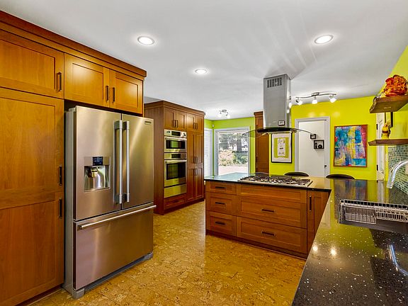 Extraordinary mid-century modern rancher, with seamless indoor-outdoor living and entertaining. Nestled on a 1/2 acre lot, this exquisite home features 4 bds, 3 bths w/ample storage, blending functionality & luxury. Expansive European designer kitchen, w/ quartz countertops, and modern cork flooring. Spa-like main bath w/ soaker tub, luxurious shower, and large walk-in closet. Sprawling deck looking over hot tub and 36 x 18 heated saltwater pool. Double semi-detached garage w/ breezeway leads to park like yard. Aluminum shingle roof, AC, hidden gutter system, and extensive concrete work. 20,868 sf property offers a serene escape. Plus, it presents a unique 1.67 acre Development opportunity with 7679 Peterson & 7680 Strachan. MT1 or MR1 compliant within OCP. Call for Developer info!