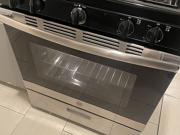 Stove and ovenNewer acTile floorsLinen closetCeiling fanUpdated bathroomNewer gas stove