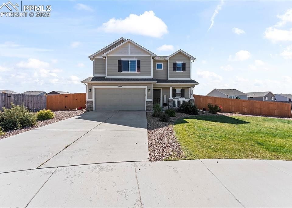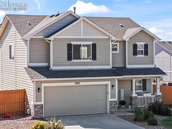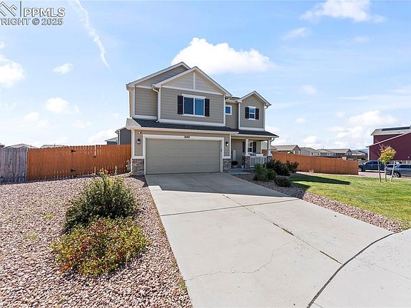 Welcome to your new home! A beautifully appointed residence in the desirable Bent Grass neighborhood of Peyton, CO. This home features 3 bedrooms and 3 bathrooms across approximately 1859 square feet. Upon entering, you’ll be greeted by a light-filled, open-concept living area with high ceilings and tasteful finishes throughout. The well-designed kitchen boasts stainless steel appliances, laminate countertops, ample cabinet space, and plenty of room perfect for entertaining. Upstairs, the open area leads to you to the primary suite offering a tranquil retreat with an ensuite bath, double vanities, and a walk-in closet. Additional bedrooms are generously sized and share full baths. Outside, enjoy low-maintenance landscaping, a patio for outdoor dining, and a fully fenced backyard with room to grow to include a swing set. The two-car attached garage provides ample storage and ease of access. Located in a quiet cul-de-sac and convenient to schools, shopping, and major thoroughfares, this home offers both comfort and practical living. Don’t miss your chance — schedule your showing today!