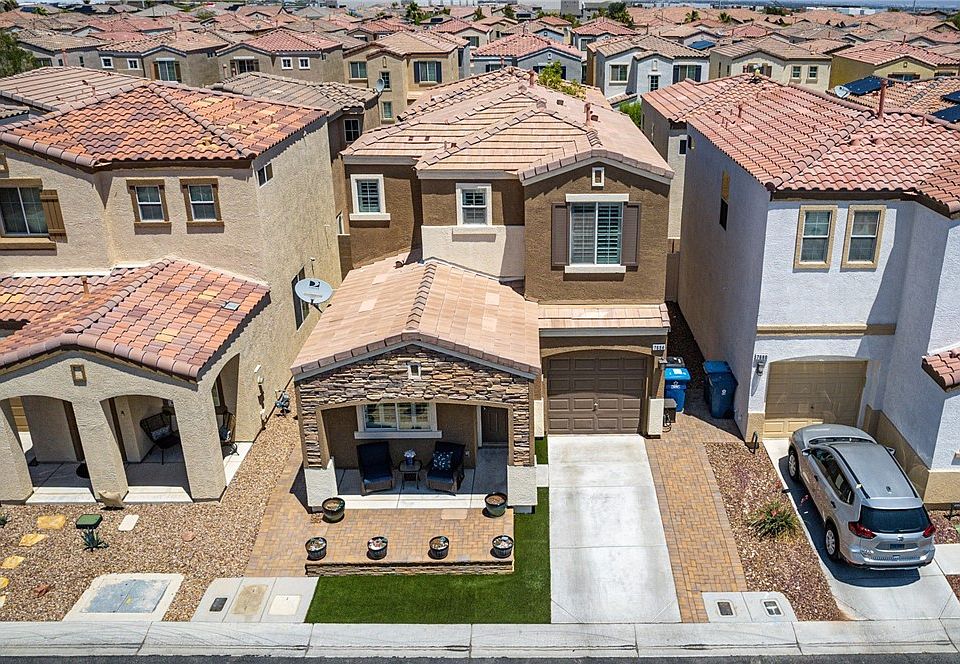 Adorable Upgraded 2-Story Home in Desirable Southwest! The property is located in a sought-after Southwest community. Enjoy beautiful curb appeal with paver driveway and porch. This home has been thoughtfully updated between 2022–2023 with numerous upgrades: Elegant window shutters, Durable tile flooring throughout downstairs, Plush carpet with upgraded padding upstairs, Oversized & quiet 72-inch ceiling fans in he living room and primary bedroom, Stylish light fixtures and upgraded bathroom vanities, Closet organizer with warranty in the primary bedroom, LG kitchen appliances: door-in-door refrigerator, stove, microwave, and dishwasher, Fresh interior and exterior paint, Low-maintenance landscaping with synthetic grass, Extended pavers in the backyard for added outdoor living space. It is conveniently located just minutes from major shopping, dining, hospital, Allegiant Stadium, the Strip, Harry Reid Airport, and easy freeway access.