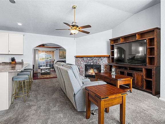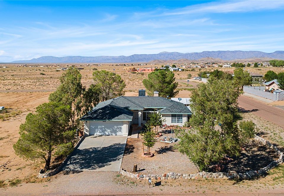 Stunning 3 Bed, 2 Bath Home with Mountain Views located in 18-hole Championship Golf Course Community. This beautifully remodeled 3-bedroom, 2-bathroom home sits on a double corner lot and offers over 1,700 sq ft of thoughtfully designed living space, including a spacious 21x11 Arizona Room and a bonus family room with ample storage. The primary suite is a true gem, featuring dual sinks, a walk-in shower, double closets, and breathtaking views of the surrounding mountains. The heart of the home is the stylishly updated kitchen, complete with a breakfast bar, sleek new cabinets, modern countertops, and stainless steel appliances all included. Cozy up by the charming rock fireplace in the main living area, perfect for relaxing. Meticulously updated in 2021, this home boasts a new HVAC system and ductwork, new water heater, fresh interior and exterior paint, as well as new carpet and durable laminate flooring throughout. Step outside to a large, landscaped yard featuring mature trees, a vegetable garden, a storage shed, and three serene flagstone sitting areas perfect for enjoying the peaceful mountain setting. Set on nearly a 1/2 acre lot (thanks to the inclusion of the lot behind), there's ample space to stretch out, garden, or simply soak in the views. Don't miss this rare opportunity to own a move-in-ready home that perfectly blends comfort, space, and stunning scenery! Located 15 mins outside of Kingman, Valle Vista Golf Course Community offers residents a clubhouse, community pool, tennis, basketball, and pickleball courts, community park, local wineries, gas station and convenience stores.