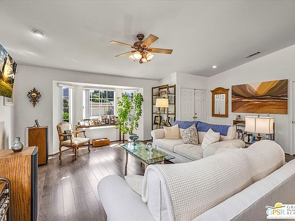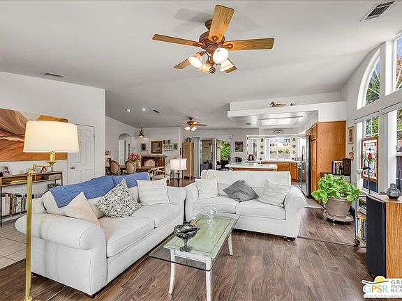 This lovingly maintained home is situated on the golf course at Palm Desert Country Club. No HOA dues and you own the land. This spacious home features an open floor plan, 4 bedrooms, 2 baths, chef's kitchen with center island, large living area with a fireplace and mountain views, a dining area large enough to host your dinner parties and family gatherings. The outdoor area is perfect for entertaining and features a salt water pool and spa, covered patio, BBQ and spacious side yard. Other notable features of this home include owned solar, laundry room and a 2 car garage with direct access. This home can be delived fully furnished. Country Club living without the expense!