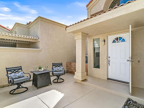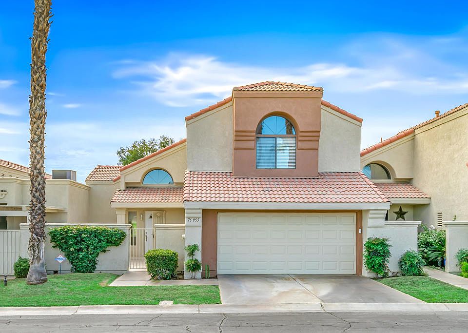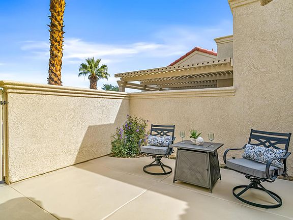 Welcome to this beautifully 2 bedroom, 2 bath and a powder room condominium in the sought-after Oasis Country Club. Positioned with a south-facing back patio overlooking the 13th hole, this residence captures gorgeous views of the lush green fairway, tranquil pond with a fountain, and the majestic mountains beyond--a truly picturesque and serene setting. Upstairs, you'll find two large bedroom suites, each with its own private bath, offering exceptional comfort and privacy. A spacious landing area provides abundant built-in storage, ideal for organization and convenience. The remodeled kitchen is both stylish and functional, featuring tasteful upgrades that complement the home's inviting atmosphere. Additional highlights include direct garage access and fresh paint, and large tile flooring, creating a cohesive interior throughout. Outdoors, enjoy a private front courtyard and a back patio perfectly suited for relaxing or entertaining while taking in the golf course and mountain views. Also convenient for your dog. Within the gates of Oasis Country Club, residents enjoy access to an 18-hole, executive golf course, 18 pools and spas, pickleball and tennis courts, a fitness center, two dining venues, including casual and fine dining options with a bar and patio. The community also features citrus trees, a dog park, and a welcoming, active social atmosphere--all within a low-maintenance, non-age-restricted environment. ''Come and see what makes Oasis Country Club such a treasured place to live.