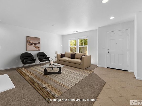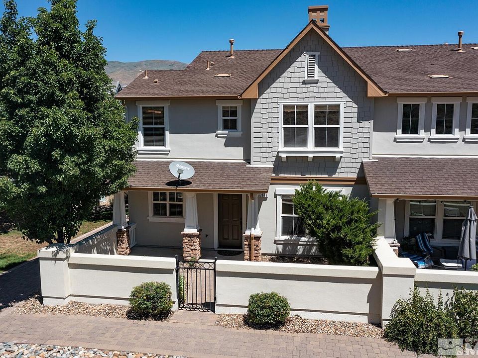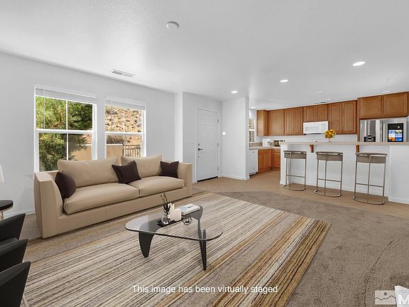 Exceptional location within the gated community of The Village at Somersett. Light & bright Duet home, 3 bedrms plus loft, 2 1/2 baths & 1882 SF of living space. Home features kitchen, living rm, dining rm & 1/2 bath on main level, master bedrm & bath, 2 additional bedrms, loft, full bath & laundry room on 2nd level. Additionally new carpet, freshly painted inside & out, 2 car garage & front door opening to courtyard patio entrance which overlooks a large open area. Plus, abundant homeowner amenities., This home is located at the far back corner of the community with no homes immediately behind. Somersett is a master planned golf community in Reno's northwest foothills. In addition beautiful community amenities include an amazing recreation center, walking trails, Canyon Nine golf course, gym, fitness studio, tennis courts, swimming pools, playgrounds & parks The Village is near Somersett's Town Center with restaurants and other retail options available. Easy access to Interstate-80 and a variety of outdoor adventures including skiing, fishing, camping & hiking in the mountains at popular lakes, rivers & nature trails. Home photographs include some which have been virtually staged.