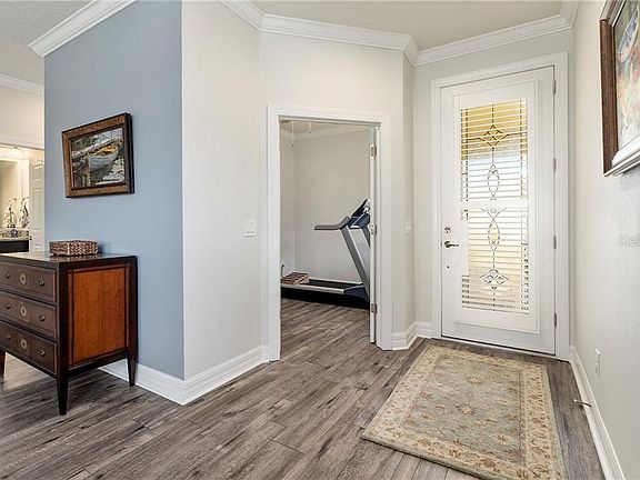 Welcome home to this Taft Street model 2/2/2 in Del Webb 55+ Community. As you enter the home you are welcomed to the open and bright floor plan with luxury vinyl plank flooring throughout. The guest bedroom and bath are set off nicely down the hallway. The master bedroom has tray ceiling with double crown molding which open to the master bathroom. Sunroom room of 120 sq ft is completely enclosed under roof and air conditioning. Kitchen is upgraded and has the wood staggered cabinets with self close doors & drawers, the stove is equipped with double ovens, lifted dishwasher, and under counter lighting. The fully roofed bird cage off the rear of the home faces a large berm with landscaping for privacy. The 2 car garage has upper storage racks, epoxied floors and electric garage door screen. The home also includes upgraded plantation shutters, water softener and crown molding throughout. Stone Creek community offers golf at additional cost, clubhouse has exercise room, classes, indoor/outdoor pool, tennis & pickle courts, and dog park. Schedule your showing today to see for yourself.