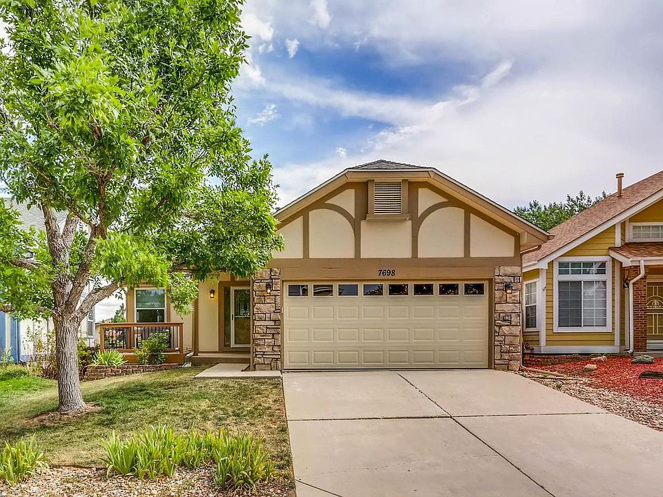 Back on market, buyer couldn't perform. Beautifully updated home with cathedral ceilings,finished walk out basement,granite counter tops,wood and tile floors,stainless appliances. New windows,paint,and stamped concrete covered patio. Additional room for optional 4th bedroom or office.Only 10 minutes from the Littleton light rail station while giving you the mountain feel with hiking/walking paths directly behind home that access 2 ponds,the national forest and state park.Secluded feeling low maintenance landscape back yard.Rear trex deck nestled among the trees is a perfect area to bar-b-q or relax.Close to schools and walking distance to the park.Only 45 minutes from downtown Denver.Close to: Arrowhead Golf Course, Roxborough State Park, Waterton Canyon, and fishing/water recreation at Chatfield State Park+Reservoir. Don't be surprised if you see deer running down the street or in your front yard. Home is priced under market value, same floor plan with out the upgrades sold for 371k.