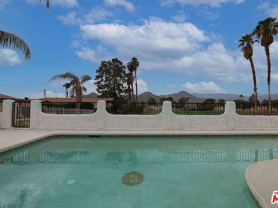 Beautifully remodeled and upkept, south facing home with private, heated pool. No neighbors in the back, it has that peaceful, tranquil, open & airy feel. New, waterproof, vinyl flooring in all rooms. 2 bedrooms on separate sides. Master/Primary bedroom has a balcony with direct access to private heated pool and gorgeous views of the mountains and golf course. Privacy in the Backyard with No neighbors. New quartz countertops in all rooms. Newer appliances. Open style, oversized living room with fireplace and open kitchen with an island. Recessed lights, beautiful ceiling fans, newer Ac & water heater. Separate laundry room and lots of closet space. Community offers 2 additional heated pools, jacuzzi/spa, tennis courts, basketball court, playground, rose garden, clubhouse/rec room available for special events with full kitchen, meeting room, free golf and more (might be a fee). 5 mins away from El Paseo, Wholefoods & Olympic size swimming pool aquatic center with waterslides. Live like you are on vacation in Paradise!!