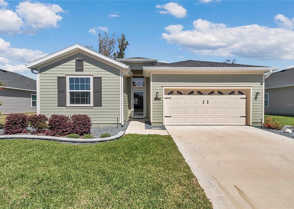 This beautifully upgraded home blends style, comfort, and functionality—perfect for those seeking elegant living in a vibrant 55+ community. From the moment you enter, you're welcomed by stunning 42" white cabinetry with crown molding, quartz countertops, and a spacious island—an ideal layout for entertaining. A rolling wall of glass doors opens seamlessly to a covered, screened lanai overlooking a private backyard with no rear neighbors. Just beyond, an extended paver patio offers peaceful outdoor living and beautiful views. Inside, wood-look tile flooring flows throughout all living areas, adding warmth and sophistication. The home offers four bedrooms and three full bathrooms, including a spacious primary suite with dual closets. (Note: The fourth bedroom is currently configured as a den without a closet.)  Thoughtful upgrades include plantation shutters, a security storm door, gutters, an upgraded KitchenAid refrigerator, dishwasher, and microwave, as well as enhanced lighting and ceiling fans. The garage features an epoxy-coated floor, pull-down attic stairs for additional storage, a hanging storage rack, and keypad entry. Professionally landscaped with stone flower bed borders, this home sits on a private lot offering both serenity and curb appeal. Enjoy access to the new covered pavilion, community pool, and recreational amenities, including bocce, pickleball, and shuffleboard—providing endless opportunities for leisure and connection. Conveniently located near restaurants, shopping, and just 15 minutes from the renowned World Equestrian Center, this home offers luxury, convenience, and community in one exceptional package.