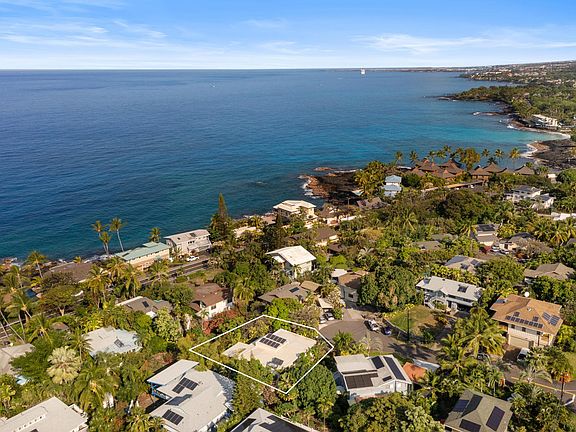 Energy efficiency is a key highlight, with solar electric panels and a solar water heater helping reduce utility costs. Located on a quiet cul-de-sac, the property offers convenient access to White Sands Grill and is just minutes from Keauhou Shopping Center, which provides grocery stores, dining options, shopping, and a variety of daily services.