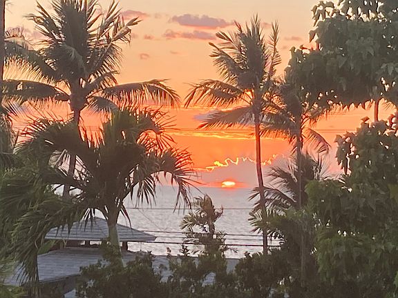Outdoor areas are framed by mature tropical landscaping that enhances privacy and offers peekaboo ocean-horizon views. Shaded sections throughout the yard create comfortable spaces to unwind and take advantage of the home’s peaceful setting.