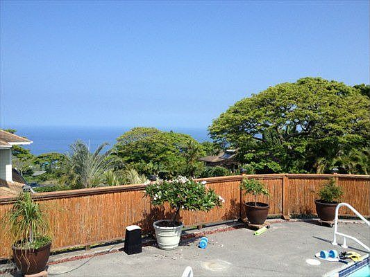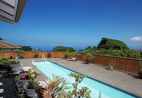 Great location in the perfect elevation with ocean views, a pool and spa. Spacious living area with large windows that almost go to the floor to allow light and tropical breezes to flow through. Valted ceilings with recessed lighting with hawainna ceiling fans. Sliding glass doors to a spacious outdoor living area with gazebo area,wet bar with small refrigerator and wine cooler too. Solar heats hot water and pool too, which also has a back up heat pump. This home was remodeled 5 to 7 years ago and has had new cabinets and appliances replaced in the kitchen. Kitchen cabinets have glass inserts in uppers that pass through to other side. Stepping stones lead you through this tropical wonderland to your own pond and to all the fruits, flowers and even your own coffee trees. Yard has bananas, white pineapple, orchids, anthurium, jabotcaba and much,much,more. Garage has tremendous storage and work space for all your projects. Garage door opener was just replaced including all smoke detectors too. This home shows pride of ownership and is easy to see.