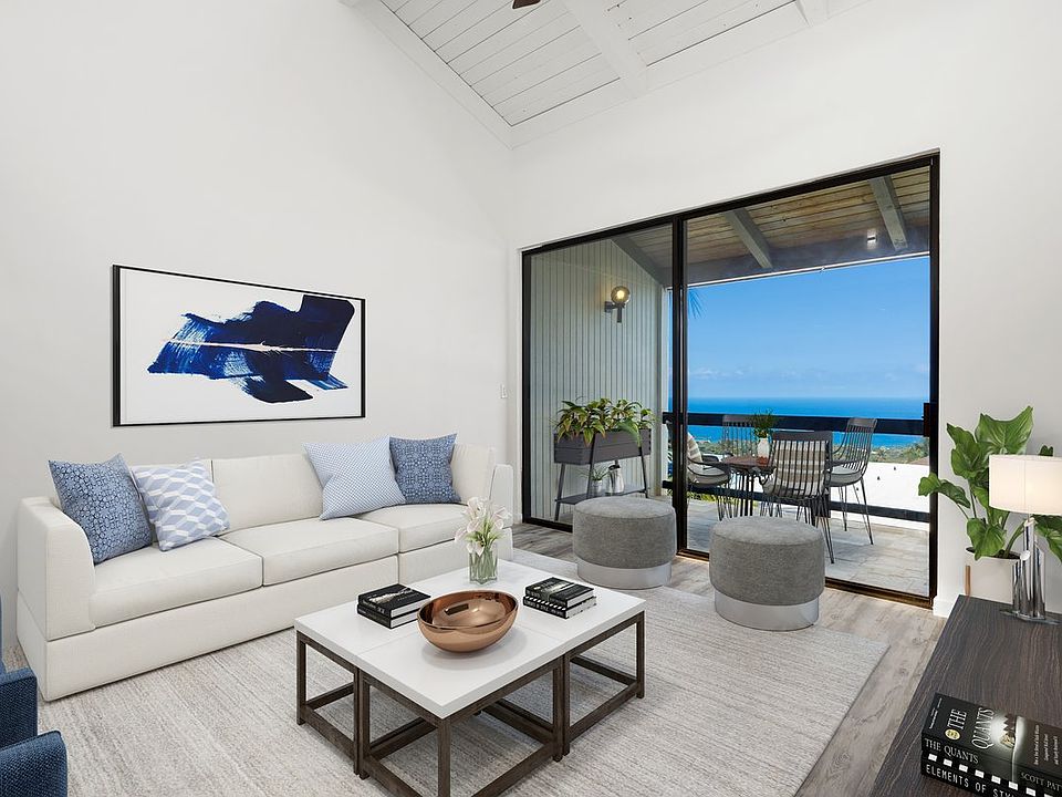 Kailua Kona - Spectacular ocean views from this renovated, contemporary designed 3 bedroom, 3 bath, upper floor condominium unit at the Maluhia Kai complex with two private lanai's. With two bedrooms and two bathrooms on the main floor with a sleek contemporary spiral staircase to access the third bedroom and bathroom above. Comes with 2 deeded parking stalls (#8 & #9). A must see unit if looking for a newly renovated home with ocean views!