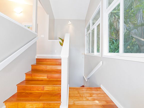 The flexible layout offers plenty of options for family, guests, or even rental income. The lower level features a 2 Bedroom suite, each room with its own entrance. The lower level opens to the infinity pool and surrounding gardens. The tropical landscaping offers rare privacy and beauty. Mature avocado, orange, and lemon trees produce plenty of fresh fruit to share.