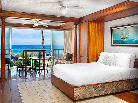 STVR CERTIFIED, BEACHFRONT STUDIO, ON 1ST LEVEL, NO STAIRS!<br><br>DIRECT oceanfront 1st floor unit at this highly desirable Beachfront Complex. You'll appreciate Koa wood trim cabinetry throughout. This unique design allows for maximum storage and functionality in a studio sized space<br><br>You'll appreciate the amazing location, this unit is close to the Pool & Magic Sands Beach Grill for convenience!<br><br>The View is stunning..Wake up to the ocean, hear the waves. Great whale watching during the winter months!<br>Immediately upon walking in, you'll notice a well appointed mini kitchen that has a stove, sink, fridge and fully stocked with dishes. The bathroom has a walk in shower for you. <br><br>Kona Magic Sands is the only beachfront condominium complex in Kona. Enjoy an oceanfront pool & a restaurant on site called Magics Grill as well!<br><br>Laundry use is available in the complex, which is a shared common area.<br><br>The monthly fee is $1416.18