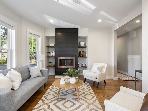 Situated on a corner lot in East Arlington, this unit is a delight with endless possibilities for entertainment and convenient living quarters. The deluxe modern living space, with striking fireplace and tremendous natural light, includes a smart-home system. The chef's kitchen is highlighted by quality appliances, quartz countertops, and easy layout to sit down for dinner or stroll to the back deck. The first level hosts a charming primary suite in a sunny corner, and two airy bedrooms, with flexibility to function as office, studio or exercise space. The lower level offers a chance to comfortably turn life upside down with a sprawling family room, featuring a bar area and tall windows. Another bedroom, full bathroom with laundry round out this bonus retreat. Further enhanced by the exclusive decks, basement storage, 2 parking spots and location - a 1/2 mile to the Alewife T and only blocks to Magnolia Park, the bike path, Mass Ave and under 1.5 miles to Arlington Center. OH by appt.