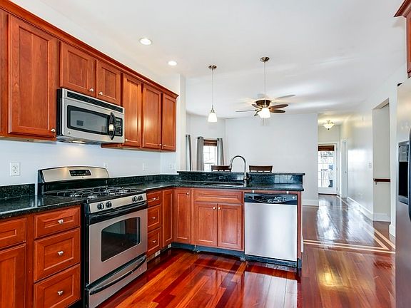 Available 12/1! This magnificent, renovated two bed, two bath residence is conveniently situational on a tranquil and charming street in close proximity to Tufts University, right on the Somerville/Medford line! This expansive first-floor unit flaunts gleaming hardwood floors, an open layout and a large private deck. The spacious kitchen boasts stainless steel appliances, cherry cabinets, and a large bay front window creating a perfect setting for enjoying a meal at home with loved ones. Complete with in-unit laundry, 2 parking spaces and direct access to a tree-lined back yard, this gorgeous home is ideal for those seeking a comfortable and cozy living experience in the heart of a vibrant community.
