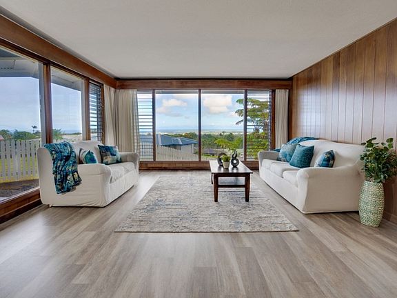 Back on Market - Buyers Contingency fell through, their loss is your gain. Wake up to amazing ocean views of Hilo Bay and Hilo port! Lovely renovated 3/3 home exuding Hilo charm with warm woods and modern conveniences. Luxury vinyl flooring as well as travertine throughout the home accented by Beechwood upgraded cabinetry, granite countertops in the kitchen and modern bathrooms enhance your living experience. New stainless range/oven, brand new washer/dryer set, and newer appliances! HUGE laundry area/bathroom and fabulous family room with separate den provide tons of space along with a spacious living room. Over 100 feet of brand new concrete driveway leads you to this charming landscaped home with zen-like touches and serene mountain and ocean views. New epoxy carport and refinished roof with freshly upgraded interiors and painted exteriors will give you peace of mind. To top it all, this 1/3 acre property is completely fenced in and has a dry bed (sometimes running) stream bed. Bathrooms do not match tax records. See it before it's gone!