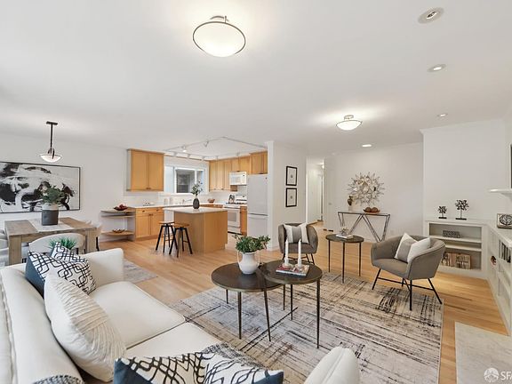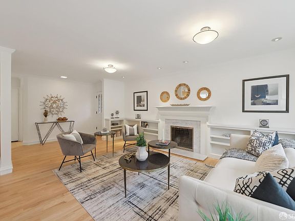 Tucked into the tranquil heart of Midtown Terrace, is a bright and inviting 3-bedroom, 2-bathroom single-family home with approximately 1,900 square feet of thoughtfully designed space nestled in the middle of the city among towering cypress trees and soaring birds, offering rare serenity. The sunlit main level features an open-concept living, dining, and kitchen area, newly refinished hardwood floors, elegant built-in bookshelves, and a beautiful Carrara marble fireplace. The seamless layout is ideal for everyday living and entertaining. Three spacious bedrooms, each featuring custom closets, offer captivating views of the ocean and Mount Sutro, complemented by two meticulously maintained bathrooms. Downstairs, a spacious, light-filled family room with custom built-ins and a desk nook offers flexibility for work, play, or hosting guests. A two-car garage with interior access and ample storage adds convenience. Out back, enjoy a private, landscaped retreat with mature plantings, raised garden beds, and a brick patio perfect for morning coffee or evening gatherings beneath the trees. Midtown Terrace is a hidden gem peaceful, central, and surrounded by nature. Nearby trails through Mount Sutro and Twin Peaks offer scenic hikes, dog walks, and sweeping views.