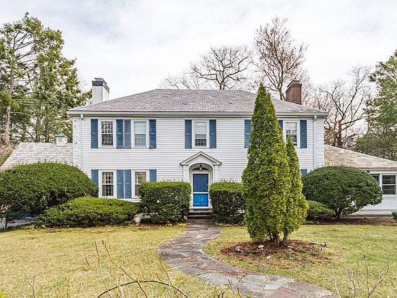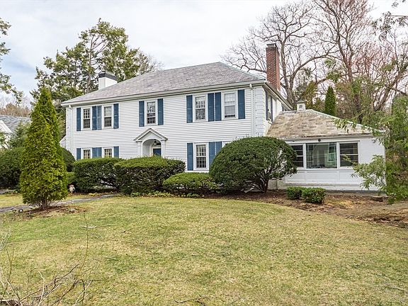 Unlock the potential of this substantial Wellesley Hills Colonial, set on a private 1.17-acre parcel. With over 3,200 sq ft of living space, this five-bedroom, 3.5-bath home offers remarkable flexibility. This home boasts a formal entry w/wainscoting & two closets. The front-to-back living room has a fireplace & ushers you to the tiled family room w/fireplace, built-in indoor grill & bar for entertaining. The dining room has lovely wainscoting & leads to the eat-in kitchen. The half bath & office finish the 1st floor. The 2nd floor has 5 sizable bedrooms, 2 of which are en-suite. The basement offers endless opportunities w/playroom highlighted by a fireplace. The home is heated by oil though natural gas is at the street. The backyard can be brought back to its full potential w/tiered patio leading to a large in-ground pool complete w/cabana & ample space for gatherings. This is a great opportunity for renovation or replacement in a highly desirable neighborhood. 1m to commuter rail.