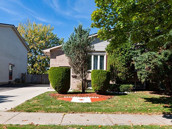 Charming raised bungalow in a prime location! Offering 3 bedrooms and 2 full baths, this home is designed for both comfort and function. The main floor welcomes you with a bright living/dining room and a well-sized kitchen with island and French door entry. Downstairs youll find a spacious rec room, additional bedroom, and full bath, with a separate entry that provides great in-law suite potential. Enjoy parking for 2 vehicles on the cement driveway (2018), and benefit from an owned hot water tank. Nestled near the 401, airport, shopping, great rated schools, public library, and recreation facilities like swimming and rock climbing! Recent updates include roof & furnace (2018), new appliances & thermostat (2025), plus fresh paint. A wonderful opportunity not to be missed!