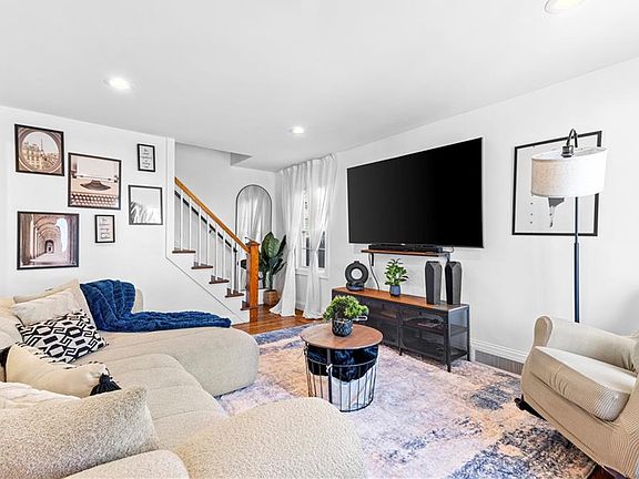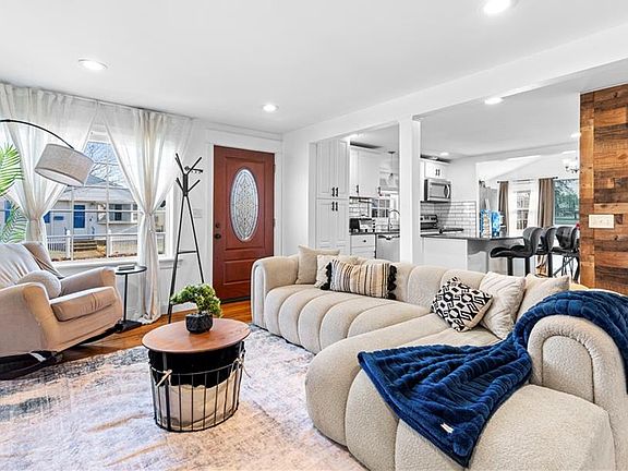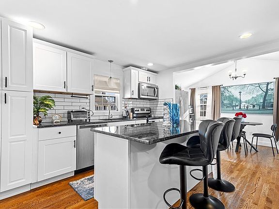 Welcome to this beautifully updated Cape-style home featuring 4 bedrooms and 1.5 bathrooms. The first floor boasts gorgeous hardwood floors throughout, enhancing the spacious open layout. The large, updated kitchen features modern finishes and ample counter space, ideal for cooking and entertaining. Adjacent is a bright dining area and a cozy living room—perfect for relaxing or hosting guests. Two bedrooms complete the first floor, with one currently being used as a generous walk-in closet, offering incredible storage options. The finished basement adds even more living space with a cozy family room, perfect for movie nights or a play area, and includes a clean half bath with laundry. The home sits on a good-sized lot with a fenced-in backyard where you'll enjoy summer days by the above-ground pool. Please note, the buyer will be responsible for taking over the solar panel lease.