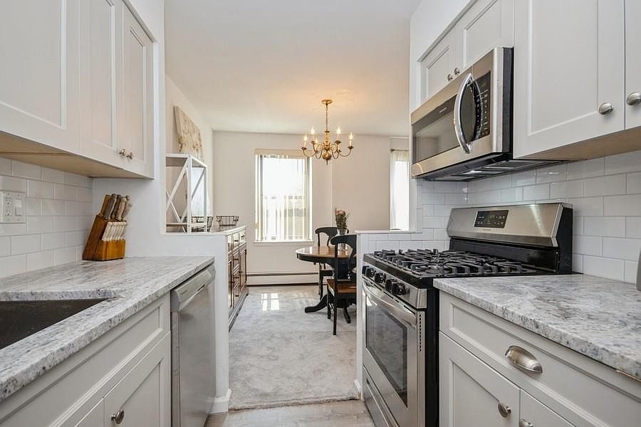 - Chandelier, Galley Type Kitchen, Granite Counters