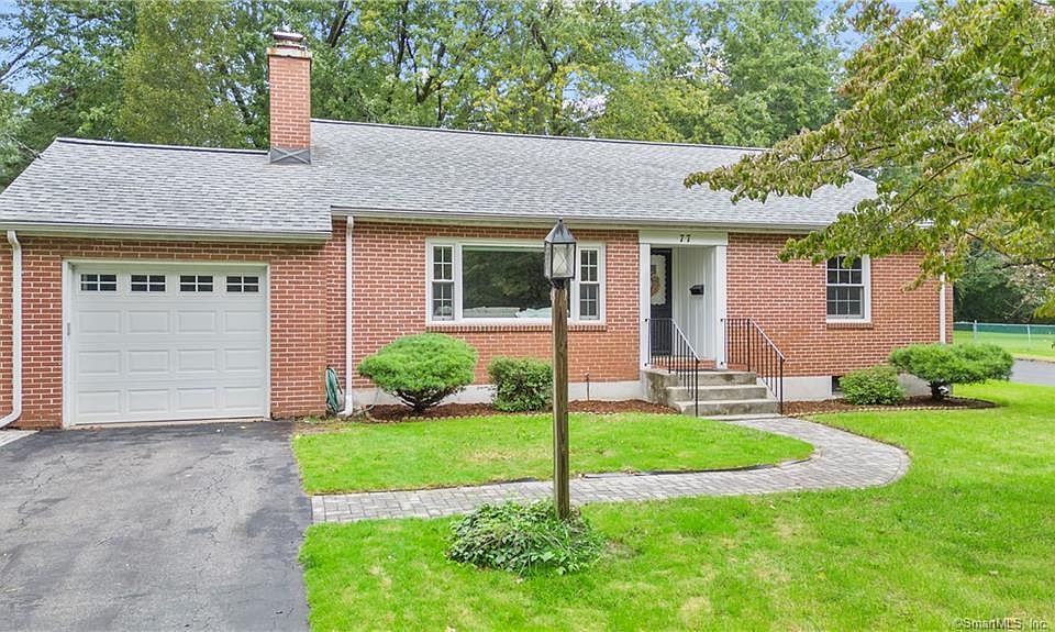 Move right in to this Wethersfield ranch - conveniently located & thoughtfully updated. Single story home that checks all the boxes: central AC, hardwood floor throughout, new electrical, new kitchen appliances, interior cosmetic upgrades, public sewer & water, large flat backyard with new vinyl fence. An inviting front stone walkway welcomes you inside to a bright interior with easy flowing layout. Original built ins & arched entryways, new lighting, new doors & hardware w/freshly painted neutral palette perfectly blend the charm of 1955 and quality of steel beam construction with an updated aesthetic. The dining room is perfect for hosting & leads into the kitchen w/ample cabinet storage and walk in pantry. Off of the kitchen, find a generously sized enclosed porch that adds 3-season space, ideal for relaxation or entertaining. 2 well-scaled bedrooms with oversized closet space, 1 full bath, 1 car garage complete this home. Full basement offers plenty of storage for optimal organization & could be further improved and finished if desired. Additional features include newer roof (2017), Anderson windows (2015), newer boiler & central air conditioning, and maintenance free brick exterior. Close proximity to golf courses, parks, restaurants, shopping, public and private schools, and easy access to major commute routes - wonderful home with an unbeatable location!