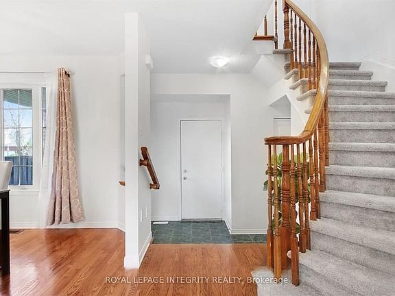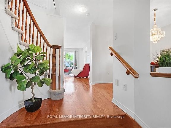 Beautifully positioned on a premium corner lot, this spacious 3-bedroom, 2.5-bath townhouse stands out with extra windows, added privacy, and an abundance of natural light. Inside, rich hardwood floors flow through the main level, complemented by plush carpet throughout the second and lower level. The bright eat-in kitchen features dark granite countertops, new dishwasher (2024) and stove (2024), perfect for everyday meals or entertaining. One of the home's most unique highlights is the large second-floor bonus family room complete with a cozy gas fireplace and high cathedral ceilings. It's the perfect space for movie nights, a playroom, or even as another bedroom. The generous primary bedroom offers elegant double-door entry, a walk-in closet, and a relaxing ensuite with a soaker tub and separate shower. Two additional well sized bedrooms and a full bathroom complete the upper level. The fully finished basement adds even more versatility with a rec room and a flexible room ideal for an office, gym, or den. The lower level laundry room has a side by side washing machine (2024) and dryer. The private backyard with deck is perfect for gatherings and outdoor enjoyment. All of this just a short walk to schools and minutes from shopping, restaurants, and amenities. A perfect balance of comfort and convenience. Property is also offered for Rent (#X12546292)