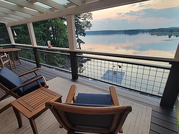Experience the beauty of Maine's coast in this elevated waterfront home on Gouldsboro Bay, where breathtaking sunsets greet you each evening. Fully renovated with meticulous attention to detail, this 2-bedroom, 1-bathroom gem offers a perfect blend of modern comforts and serene coastal living. Step onto the covered porch or relax on the wooden patio, where you can soak in the wildlife & natural beauty surrounding you. The property features a short pier, and a private courtyard oasis that invites you to unwind. The home also boasts a spacious, oversized 1-car garage with storage above, offering plenty of room for your belongings. The full basement allows an opportunity to create additional living space if you so desire. Across the road, an additional .58-acre lot holds incredible potential for expansion or customization, further enhancing the property's value. With the option to come furnished, this home is move-in ready. Owner financing is available with acceptable terms, making this waterfront haven even more accessible. Don't miss your chance to own a piece of paradise on Gouldsboro Bay.
