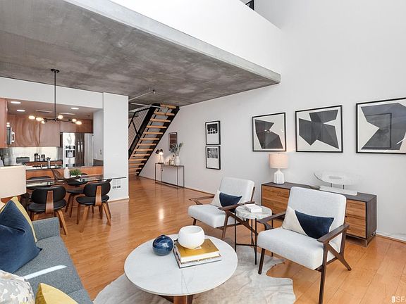 This elegant light-filled loft is the epitome of sophisticated living in the heart of San Francisco! Featuring a spacious west facing deck and a secluded office area, this great condo has it all. Fall in love with the bright and airy space which has high ceilings and an industrial feel. The main level/entry area leads into the living area, with 18 foot floor to ceiling windows and adjacent deck. There is a modern kitchen with a dining area and a powder room on this level. Upstairs is the loft bedroom, full bathroom and the terrific office area or den. There is also one car deeded underground parking. With South Beach, the Financial District, the Embarcadero, the ballpark and Caltrans right outside your front door, this wonderful condo provides quintessential San Francisco living at its best!