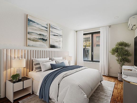 77 East 110th Street provides sophisticated, elegant, and sustainable living and is LEED Silver certified. The building offers a virtual doorman, landscaped roof deck, common courtyard, fitness space, laundry room, and bike storage. Entering through the lobby, residents are greeted by soaring ceilings, tiled walls, recessed lighting, curated artwork, and a striking chandelier that anchors the space.