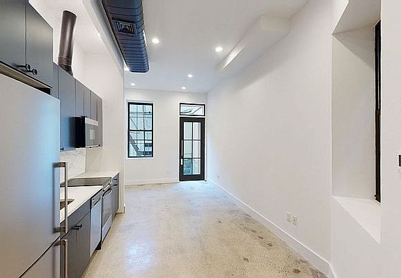 Brand new construction, high ceilings, stainless steel appliances, dishwasher, microwave, concrete floors, private backyard
