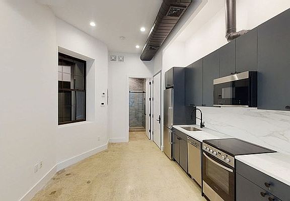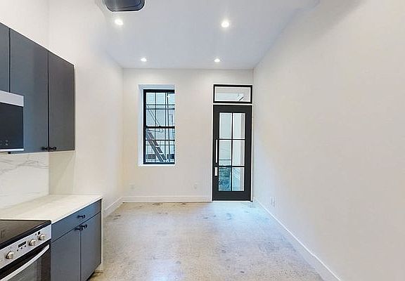Brand new construction, high ceilings, stainless steel appliances, dishwasher, microwave, concrete floors, private backyard