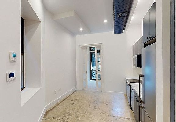 Brand new construction, high ceilings, stainless steel appliances, dishwasher, microwave, concrete floors, private backyard