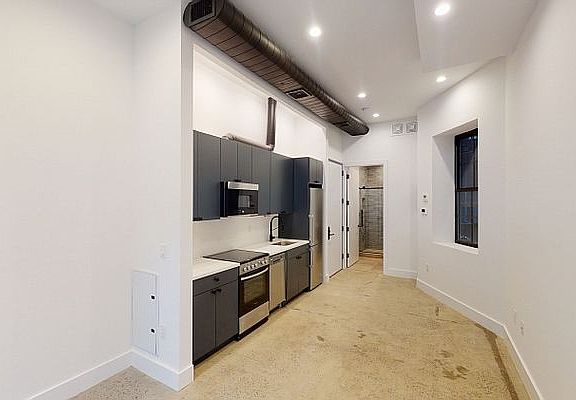 Brand new construction, high ceilings, stainless steel appliances, dishwasher, microwave, concrete floors, private backyard