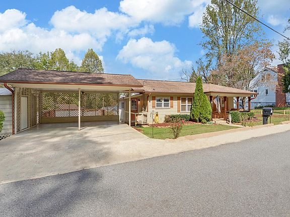 City convenience meets easy living in this freshly updated 2-bed, 1-bath ranch located in downtown Murphy. Inside, the kitchen and dining area stand out with matching wood floors, a wood-paneled ceiling, and cabinetry that ties it all together with warm, natural charm. Coordinated wood trim flows throughout the home, adding a polished touch that defines the space. A full unfinished basement offers room to grow, and the spacious rear deck is perfect for outdoor living. An attached double carport and storage building add extra utility. Located on a quiet street within city limits and outfitted with fiber optic internet, you can walk to shops, dining, and the Murphy River Walk. Move-in ready with room to grow.