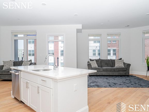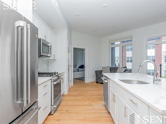 Unit 304 at The Brook is a spacious three-bedroom, 2-bathroom apartment with a private balcony. Oversized windows let in natural light that spreads throughout the open concept floor plan and warms the Sawyer Mason wide plank wood flooring. The quartz countertops and the GE Cafe appliance package in the kitchen will please any home chef. A multi-functional kitchen island connects the living and dining area for storage and flexibility. All residents of The Brook have access to the building's amenities, including a dog wash, bike storage, available garage parking, and a roof deck with amazing sunrise/sunset views. Just minutes from the Alewife MBTA station, Route 2, and all that Greater Boston has to offer. Photos of another unit, see virtual tour of unit #304.
