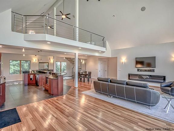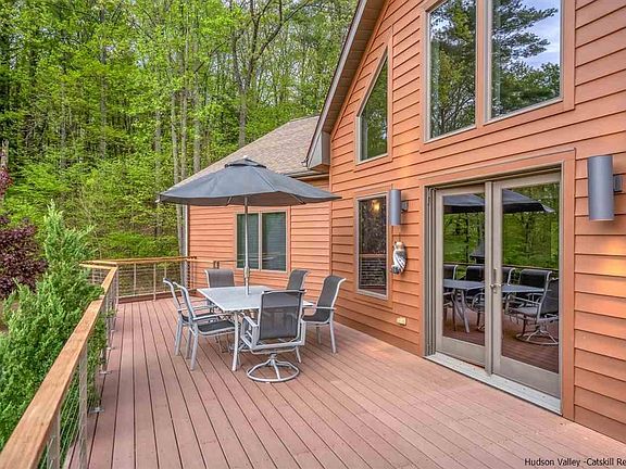 Stunning Contemporary, Amazing Privacy! Long Country drive leads up to this sun filled dream of a house that has been custom built to make you and the family the focus! Quality construction, cedar siding, gleaming Brazilian Cherry Wood flooring, primary en-suite with radiant heat. Kitchen is a Chefs Dream with Wolf Range and Sub Zero appliances Enjoy peace & tranquility from the sprawling Timber Tech deck as you watch the wild life. The huge walk-out lower level offers unlimited opportunities family room, media or great room, anything you want! There's also a detached 2 1/2 car garage, with loft space for Yoga, Artist or Studio. Perfect country getaway.