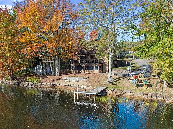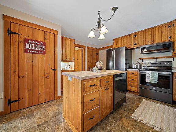 This is the lake life you’ve been dreaming of! From the moment you step inside, you’ll be welcomed by light-filled rooms, soaring cathedral ceilings, and warm pine walls and floors that bring the outdoors in. The open-concept living room, complete with a wood-burning fireplace and sliders to the oversized deck, is ideal for quiet mornings or evenings spent watching unforgettable sunsets. The first-floor primary suite with bath offers comfort and convenience, while the lower-level workshop provides space for hobbies and projects. An office/den, currently being used as a bedroom, adds flexibility for family or guests. Step outside to your own private sandy beach, dock, and fire pit—where every day feels like a vacation. The entire exterior of the home has been beautifully restored, including replacement of some log siding and fresh paint. The home is lovingly cared for, professionally cleaned, and may also remain fully furnished if desired. As part of the Locke Lake community, you’ll enjoy swimming pools, tennis, pickleball, access to 6 beaches, a community lodge, 2 marinas, and a six-hole golf course. With nearby skiing and snowmobiling, every season brings new opportunities for recreation.This inviting property is spacious yet cozy, offering the perfect setting to create lifelong memories at the lake. First showings are the Open House on Saturday, October 4th, 12:30-2:30.
