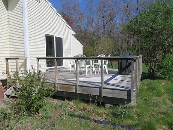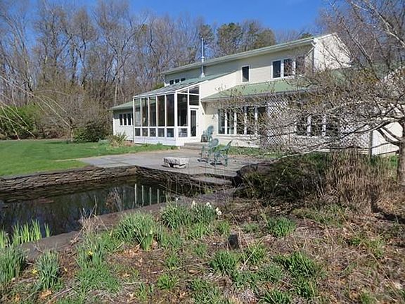 Situated on over 12 acres of privacy this quality, custom built, energy crafted Contemporary home has 8" insulated walls, oriented for passive solar, a ground source heat pump and photo-voltaic panels for electricity. The home allows for one floor living with a large master bedroom suite, a 15' x 17.5' sunroom which also stores heat and a first floor laundry. The living room and dining room have large windows so you can relax in the sunlight and enjoy winter views of Mt. Toby. Among the many additional amenities are wood floors, central vacuum, a 3 bay garage, large stone patio, security system, underground electric lines and fiber-optic cable, a semi-finished basement with a large workshop and many more wonderful features.