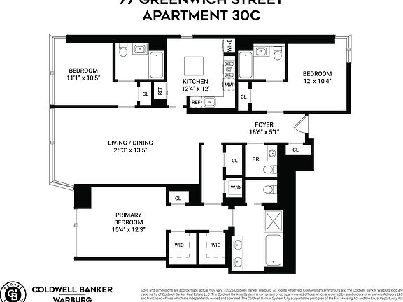 1905sf Never lived in 3 Bedroom Condominium with 3.5 Bath at 77 Greenwich!