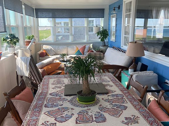 Ocean front, fully furnished four bedroom home in duxbury beach with a landscaped yard. The house has an enclosed porch on the beach side and outdoor deck on the street side. Kitchen includes stainless steel appliances, with dishwasher, garbage disposal, full sets of caphalon cookware, and full sets of plates and utensils. Includes washer/ dryer less than 4 years old, and two televisions. The house was fully re-insulated 5 years ago and Interior and exterior have been recently painted - exterior one year ago, interior 4 years ago. Half bath is in the first floor, all four bedrooms and full bath are on the 2nd floor, two bedrooms have desks that can be used as a home office. Includes a Wifi enabled HP printer to support remote work. While the home is located on the beach, we do not guarantee beach access. Access may be limited or unavailable for extended periods, and in some cases, may not be available at all. Owner pays for water, trash pickup, and WiFi. Renter pays for gas and electric - bills will be forwarded to renters. Maximum rental period is 9 months or until June 15th whichever comes first. Month to month rentals are possible at higher rate. No smoking/ vaping on the premises. No large groups/ parties. No pets